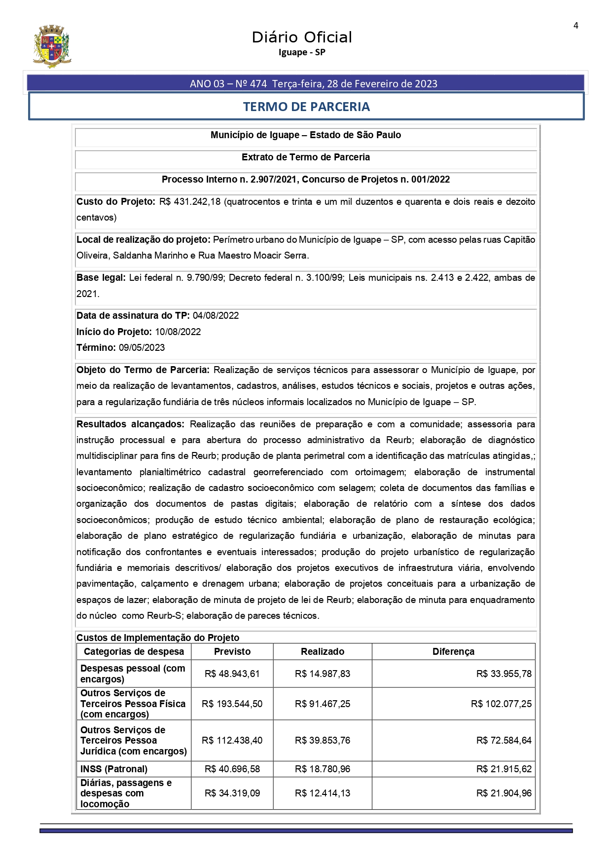 Termo de Parceria Prefeitura Municipal de Iguape/SP e o Instituto Soma 28 de fevereiro de 202328 de março de 2025Publicações Extrato de Termo de Parceria – 2022 Processo Interno n. 2.907/2021 Concurso de Projetos n. 001/2022